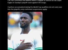 The Confederation of African Football has confirmed that Super Eagles midfielder Wilfred Ndidi is free to play against the Democratic Republic of Congo in Sundays African playoff for