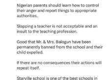 An Abuja-based school where the parents of one of their students stormed the school premises and ass@ulted a teacher for sl@pping their child, has wielded the big stick. According