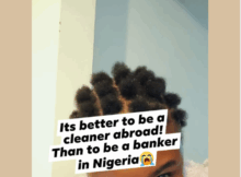 A UK-based Nigerian woman, Obiageli Juliana Okoro, has said that it’s better for one to be a cleaner abroad than a banker in Nigeria. Okoro stated this in a