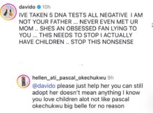 Socialite, Cubana Chiefpriests alleged baby mama, Hellen Ati, has appealed to singer Davido to adopt Anu, the 13-year-old girl demanding DNA test from him. Anu’s mother insists that she