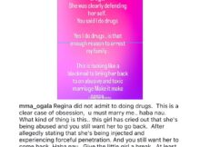 Actress Doris Ogala has denied reports that Regina Daniels admitted to doing drugs, In a post shared on her IG page, Doris said the statement Regina put out