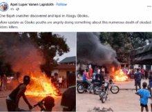 A suspected motorcycle thief was set ablaze by an angry mob in Gboko Local Government Area of Benue State. The incident occurred in the Abagu area of Gboko on