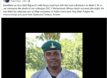 Gunmen suspected to be Lakurawa terrorists have k!lled a Nigeria Customs Service (NCS) officer at a checkpoint in Maje community, Bagudu Local Government Area of Kebbi State. Journalist Bakatsine,