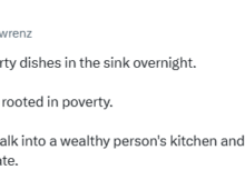 Nigerian media expert, Alabi Lawrence, has said that the habit of leaving dirty dishes in the sink overnight is rooted in poverty. Don’t leave dirty dishes in the sink