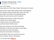 A Nigerian man, Udeme Etuk Emmanuel, has been thrown into mourning following the d3ath of of his 23-year-old wife, Mary, barely a year after their wedding. The couple got