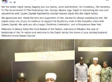 The Secretary to the Government of the Federation, Senator George Akume, has married Queen Zaynab Otiti-Obanor, the former wife of the Ooni of Ife, Oba Adeyeye Enitan Ogunwusi. A
