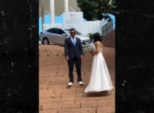 A newly married couple in Blumenau, Brazil had their wedding photoshoot interrupted in dramatic fashion when a car unexpectedly descended the cathedral steps behind them. Jaque Amorim and