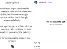 Tyler Hilton has revealed that he and Megan Park have ended their marriage. In a statement shared on social media on Friday, January 16, the One Tree Hill actor