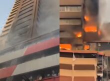 A fire broke out at the Great Nigeria House in Lagos Island this evening December 24. Men of the Lagos fire service have been alerted and are responding promptly