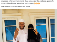 A Nigerian man, has shared a photo with his wife on their third wedding anniversary, saying that the 3 fingers they raised symbolise three additional wives he plans