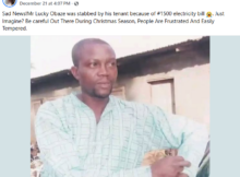 Tragedy struck in Boji-Boji Owa, Ika North-East Local Government Area of Delta State, as Mr. Lucky Obaze, was allegedly st@bbed to d@th by his tenant over a N1,500