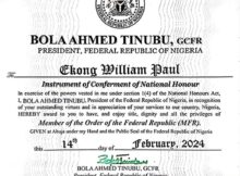 President Bola Tinubu has conferred the national honour of Member of the Order of the Federal Republic (MFR) on former Super Eagles captain, William Troost-Ekong. The defender confirmed the
