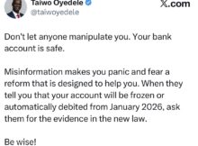 The Chairman of the Presidential Committee on Fiscal Policy and Tax Reforms, Taiwo Oyedele, has denied claims that bank accounts not linked to any Tax Identification Number TIN