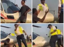 An airport official is currently receiving heat from Nigerians online after he was caught on tape ass@ulting a young man for posing beside a helicopter that flew singer