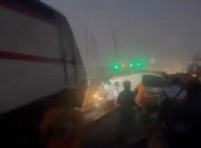 A train collided with a Toyota Hiace bus on Monday night, Dec. 22, at Arena, Oshodi, Lagos State. The Lagos State Emergency Management Agency has confirmed no casualty or