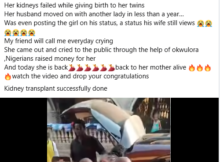 A Nigerian woman, Tovia, reunited with her family amid tears, cries of joy and embraces after a successful kidney transplant. A friend, Anosike Ogochukwu, on Sunday shared a celebratory