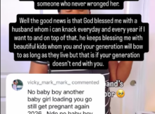 A pregnant Nigerian woman, Millicent has reacted after a lady shamed her for having only girls, saying she won’t give birth to a boy no matter how much