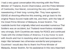 Thailands leader vowed on Saturday, December 13, to keep fighting on the disputed border with Cambodia as fighter jets struck targets, hours after US President Donald Trump said