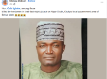 Suspected armed herdsmen have k!lled five persons in Otobi, a community in Otukpo Local Government Area of Benue State. Among those k!lled was Igbabe Ochi, a former House of