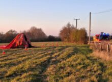 Two passengers were injured after a hot air balloon struck power cables during landing, causing a fire and making the basket electrically live, according to a report released