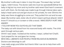 A woman has accused her mother and brother of causing the de@th of her brother’s baby. The woman narrated how her brother’s wife went into labour and the doctor