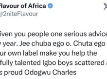 Singer Flavour has clapped back at an X-user who accused him of refusing to sign young and talented Igbo singers just because he doesn’t want them to outshine