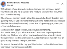 A Nigerian woman, Halima Bukola Mubaraq, has advised married women not to stop their husbands from marrying new wives if they can no longer satisfy them s3xually. Wife please,