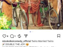 Identical twin actors gave married to identical twin sisters who were pregnant at the same time. The Shire Twins, both Nollywood actors, shared photos and videos from their pre-wedding