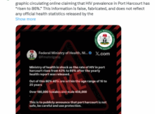 The Federal Ministry of Health and Social Welfare has debunked a viral claim suggesting that HIV prevalence in Port Harcourt has reached 86 percent. In a statement released on