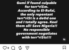 Imeh Bishop Umoh has written an open letter to President Bola Tinubu, calling on him to prosecute Sheikh Gumi for terrorism. Sheikh Ahmed Gumi, a northern Nigeria Islamic cleric,