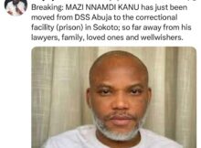 Counsel to Nnamdi Kanu, Aloy Ejimakor, says the Indigenous People of Biafra (IPOB) leader has been moved from the DSS custody to a correctional centre in Sokoto MAZI NNAMDI