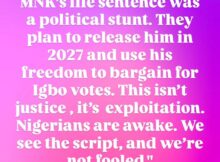 Actor Prince Eke says the life sentence handed to IPOB leader, Nnamdi Kanu, by the Federal High Court Abuja on Thursday, November 20, is a political stunt”. In a