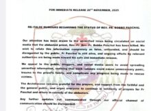 The Archdiocese of Kaduna has dismissed rumours circulating on social media that the kidnapped Catholic priest, Rev. Fr. Bobbo Paschal, has been k!lled by his abductors. The parish priest