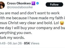 Cross Okonkwo, popularly known as Cross da Boss, has addressed an issue he is facing for being vocal about his religious beliefs. The former Big Brother Naija reality star