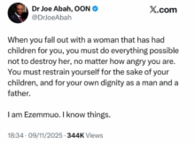 Lawyer and former Director-General of the Bureau of Public Sector Reform, Dr Joe Abah, has appealed to men never to work against the mother of their children when