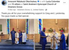 A Nigerian man, Innocent Ndubuisi Okechukwu, has married his lover, Greg, in the United States. The wedding took place in St. Andrews Episcopal Church in Downers Grove, Illinois (USA)
