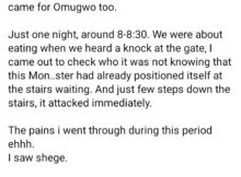 A Nigerian lady, Prisca Amara Ewin, has recalled her experience after she was bitten by a snake. She shared her story in a Facebook post on Sunday, February 1,