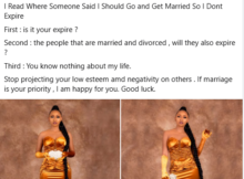 Nigerian actress, Grace Charis Bassey Effah formerly known as Belinda Effa, has hit back at people single shaming her, saying she should get married so she won’t expire. Effah