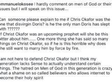 Cleric and former singer Emmanuel Okose, has taken to social media to tackle actress Doris Ogala over her recent online drama with clergyman, Chris Okafor. Doris has been dragging