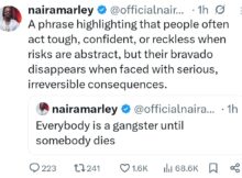 Naira Marley had to clarify after he received heat for a tweet he made. The Nigerian singer took to X to write: “Everybody is a gangster until somebody dis.” His