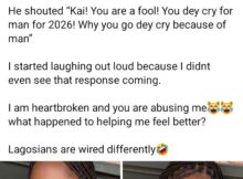 A Nigerian lady, Angela Onoja, has revealed the unexpected reaction from a driver after she told him that a man broke her heart. According to Angela, she couldn’t tell