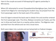 A Nigerian man and a woman are in federal custody after being accused of abducting a federal agent in Minnesota, United States. Oluwadamilola Bamigboye, 24, and Rekeya Frazier, 23,