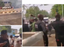 Operatives of the Lagos state police command today January 28, fired teargas canisters at residents who staged a protest at the Lagos state House of Assembly complex over