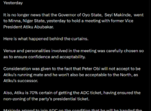Former Ekiti State Governor Ayodele Fayose has alleged details of discussions that reportedly took place between Oyo State Governor Seyi Makinde and former Vice President Atiku Abubakar during