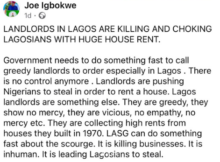 APC chieftain, Joe Igbokwe, has condemned the rise in rents in Nigeria. In a post shared on his Facebook page, Igbokwe said the state government needs to do something