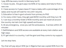 A Nigerian medical doctor, Baridueh Badon has taken to social media to list some of the benefits he gets after paying 42% tax to the government in Germany. Posting