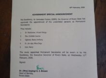 Rivers State Governor, Sir Siminalayi Fubara, has officially dissolved the Rivers State Executive Council. This development shortly after he mended fences with his Predecessor and FCT Minister, Nyesom