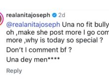 Actress Anita Joseph has clapped back at trolls who attacked her for commenting on actress, Rosy Muerer’s Instagram page. Following the reconciliation between Tonto Dikeh and her ex-husband, Olakunle