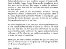 Concerned subscribers/residents of the Greater Lagos County Apartments, Obele-Oniwala, Surulere, Lagos have written write an open letter to Governor Sanwo Olu over Megamound Investment Limited. Read below OPEN LETTER: MEGAMOUND